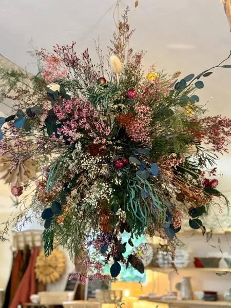 Vous pouvez aussi apprécier votre boisson coté atelier floral. L’Atelier floral vous présente de magnifiques bouquets de fleurs séchées, des couronnes florales, des suspensions, des centres de table, des bougies créées avec de la cire naturelle de soja aux senteurs cosy et décorées de fleurs séchées.
